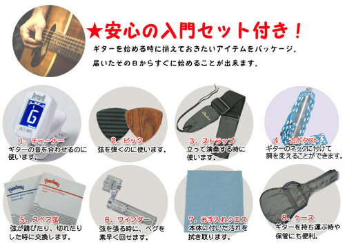 セットの小物も充実! 当店で完璧に調整された抜群の弾き易さを持つ1本!入門用こそ弾き易く音の良い ギターが必要です。