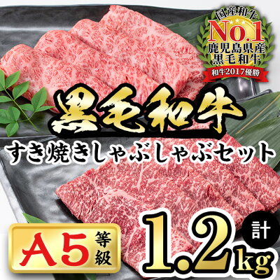 【ふるさと納税】≪鹿児島県産A5等級≫徳重さんのA5黒毛和牛すき焼きしゃぶしゃぶセット(霜降りスライス・赤身スライス各200g×3パック・合計1.2kg)2017年全国和牛能力共進会総合優勝の鹿児島県産黒毛和牛の上質な牛肉をご家庭で!【カミチク】b5-101