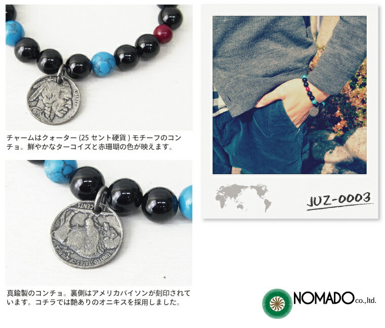 《最大400円OFFクーポン/条件あり》 [Nomado ノマド]アウトドアチャームブレスレット ターコイス&コンチョ Mother Earth JUZ-0003 レディース メンズ パワーストーン