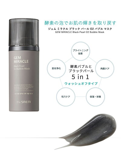 楽天1位 炭酸パック Thesaem ザセム ジェムミラクル ブラックパール O2 バブルマスク 105g 炭酸パック 韓国コスメ 定形外 送料無料 バイキング 紹介 The saem ザ・セム